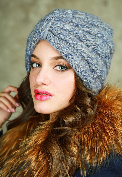 Стильная чалма из фантазийной пряжи на флисе. Интересные цветовые сочетания.