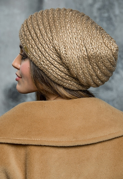 Удлиненный колпак из итальянской пряжи с металлическим отливом. Вязка в виде руликов. Утеплен флисом. Можно носить с Petra снудом.