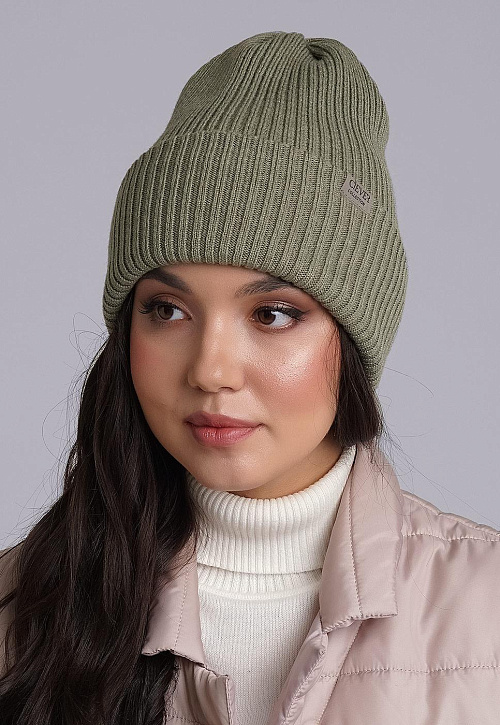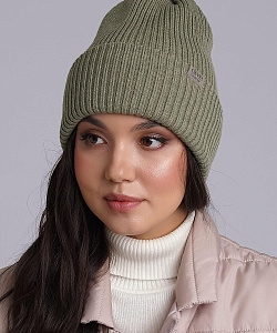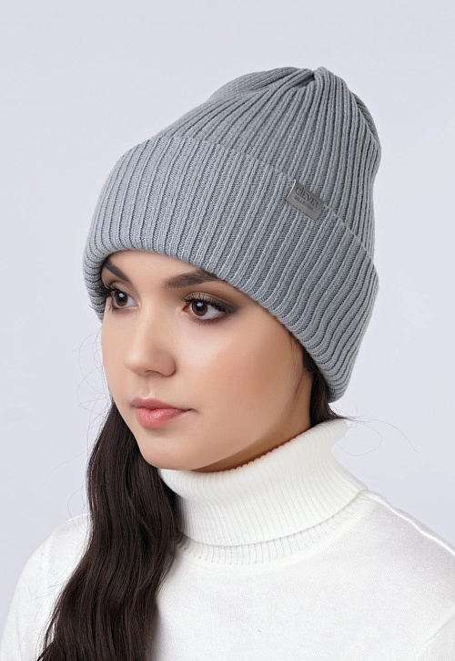 Женская двойная шапка с отвором, связаная ластичным переплетением . Декорирована нашивкой- логотип. Идеально подойдёт для холодной осени- зимы.