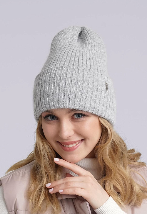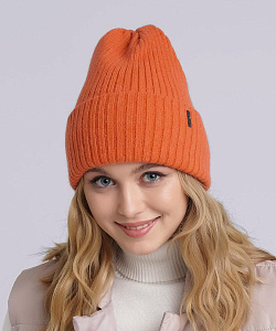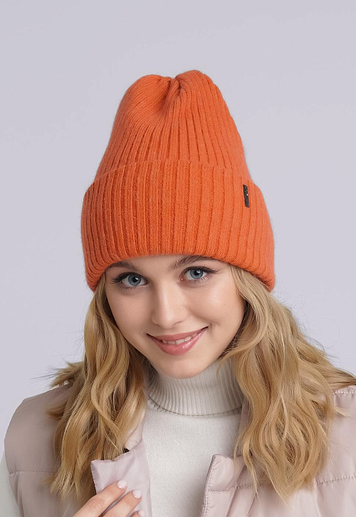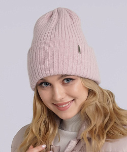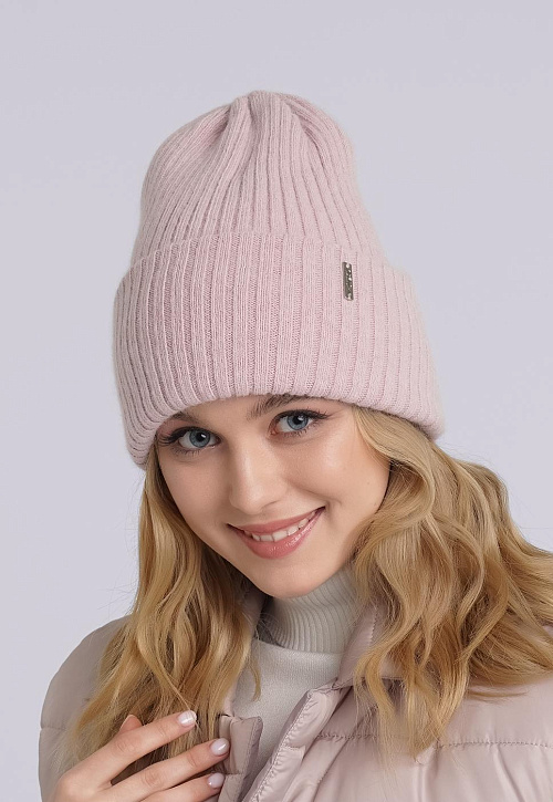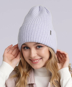Женская двойная шапка с отворотом, декорирована стильной имиджевой нашивкой. Идеальна для зимы.