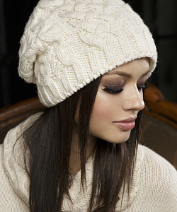 Молодежная шапка крупной ручной вязки. Замечательно подходит для разных типов лица. Модель на флисовой подкладке. Форма шапки — колпак, фиксируется сзади на кнопки.