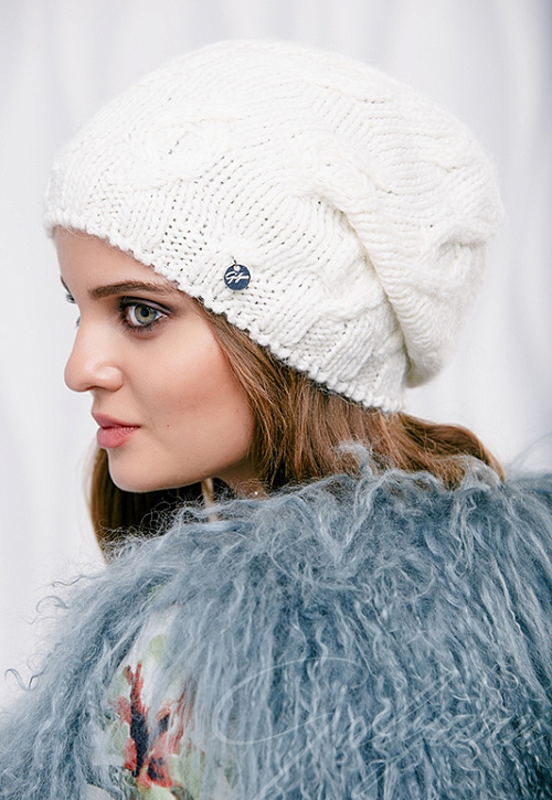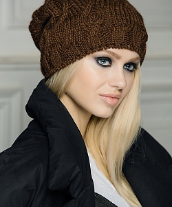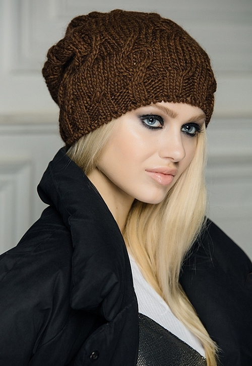 Шапка крупной вязки, удлиненная модель. Одинарная вязка.