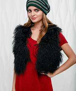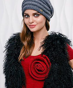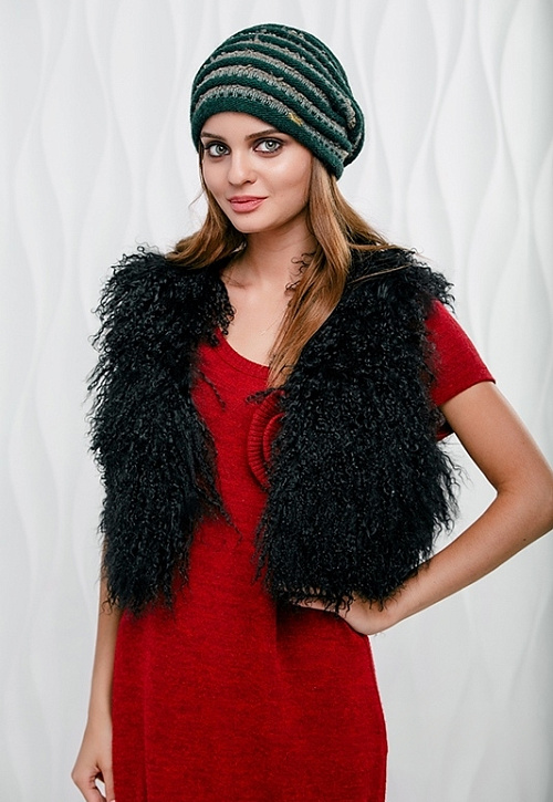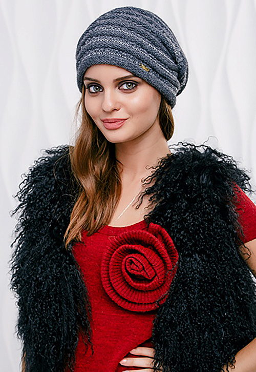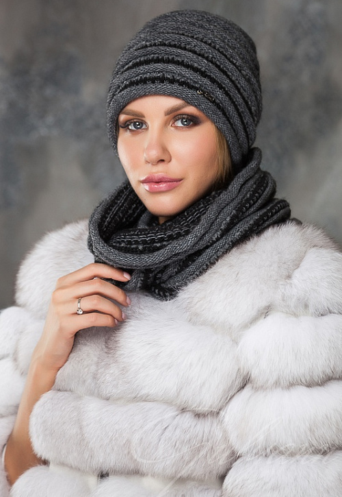 Стильная шапка одинарной вязки на флисе. В модели использованы интересные сочетания разных видов пряж. Можно комплектовать с Annelli капором.
