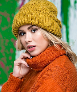 Мягкая объемная шапка с широким отворотом на флисовой подкладке. Модель выполнена из итальянской пряжи.