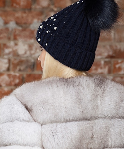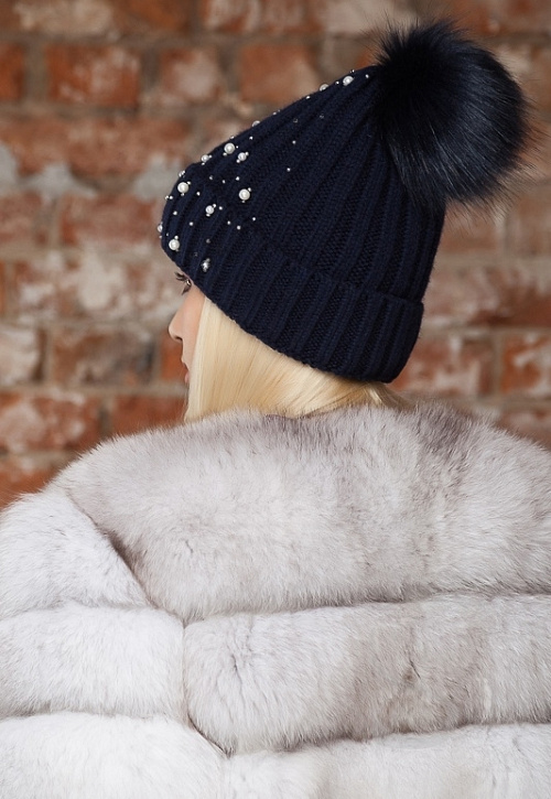 Шапка с отворотом на флисовой подкладке. Удлиненная модель. Вышивка из жемчуга освежает образ.