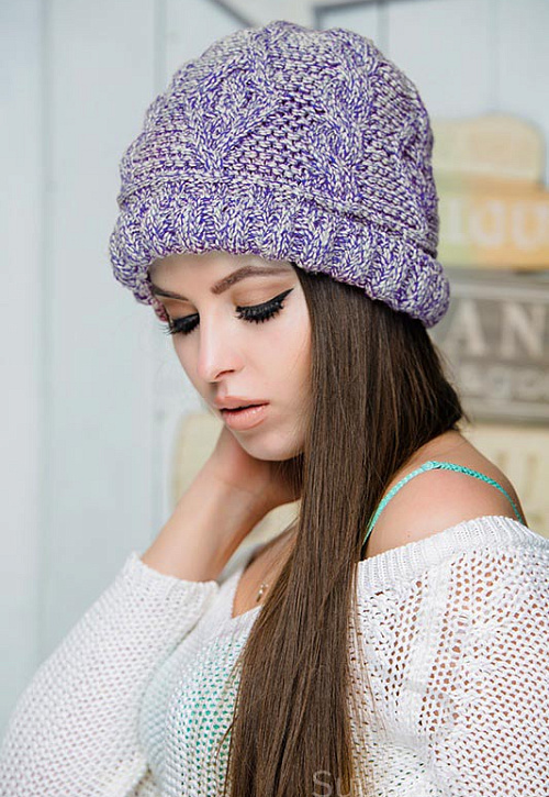 Объемная шапка с фиксирующимся отворотом на флисовой подкладке. Меланжевые расцветки.