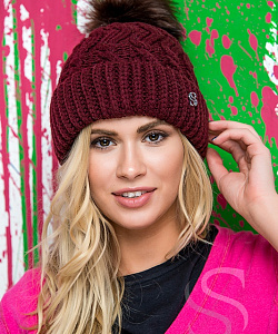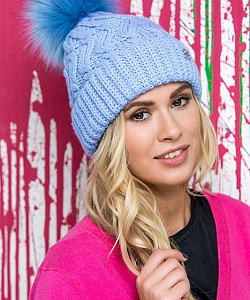 Удлиненная модель с фиксированным отворотом на флисовой подкладке. Декорирована помпоном из меха.