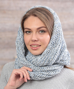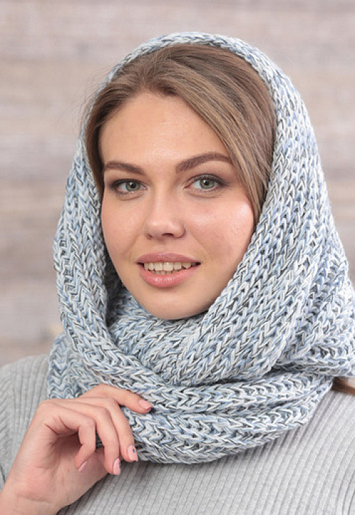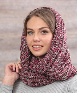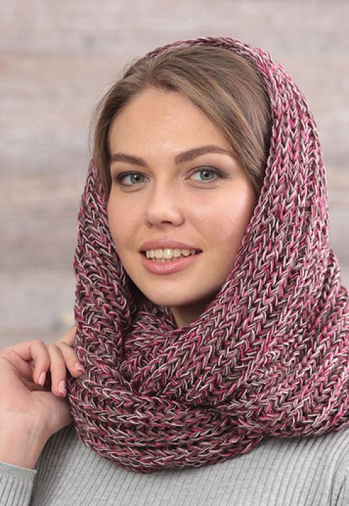 Шарф-снуд из меланжированной пряжи, оригинальной объемной вязки, в 2 оборота.