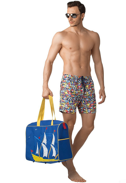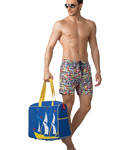 Объёмная сумка с двумя ручками кручёного типа, подкладкой и застёжкой-молнией, украшенной репсовой лентой. Модель дополнена боковыми карманами и потайным карманом на молнии. Пластмассовые «ножки» служат для защиты дна от повреждений. Дизайнерский принт делает сумку прекрасным аксессуаром для мужской коллекции 3215 Challenger.