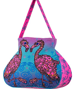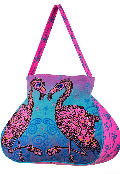 Объёмная летняя сумка эксклюзивной формы. Изделие дополнено удобной ручкой и застёжкой-молнией, украшенной подвеской-фламинго. Ещё один плюс модели – практичный потайной карман на молнии.