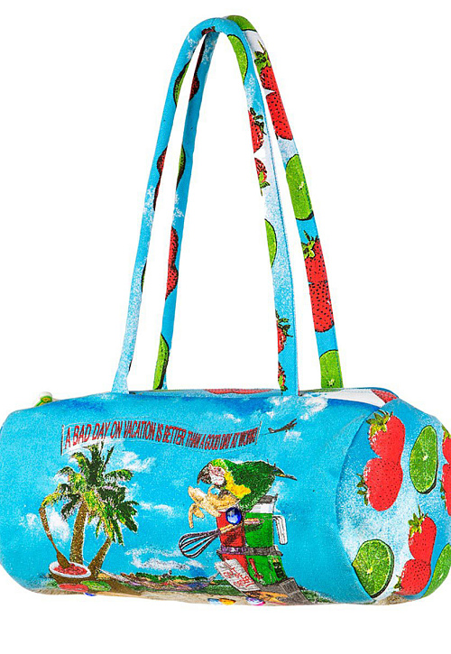 Стильная и компактная сумка на молнии, украшенной подвеской-бокалом. Модель имеет две ручки кручёного типа. Наличие внутреннего кармана, закрывающегося на молнию, – несомненный плюс изделия. Размер 35*17cm
