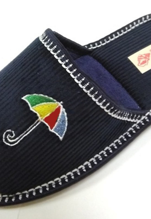 Обувь жен. вельвет синий, вышивка "Зонтик" 513053
