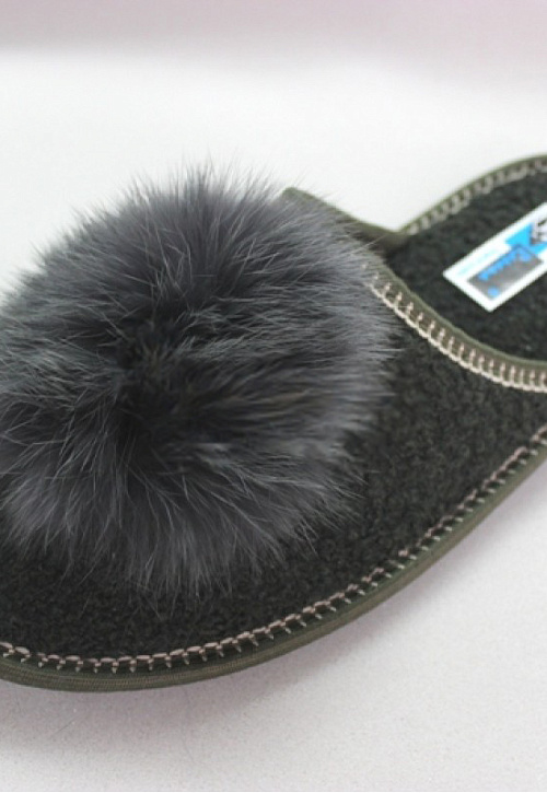 Тапки с пушком.зел.букле (шерсть), мех кролика 502020НР