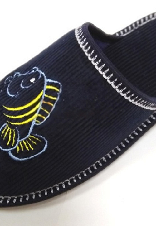 Обувь жен. вельвет синий, вышивка "Рыбка" 502005