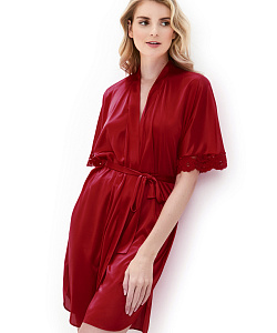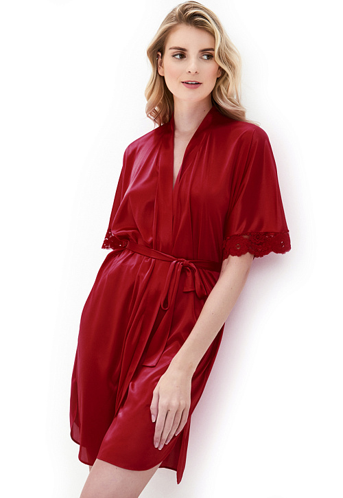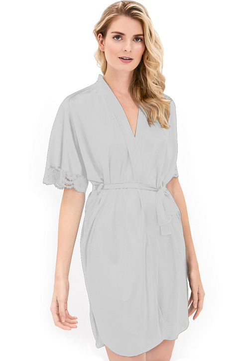Женский халат запахом, с кружевной отделкой на рукавах