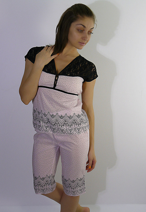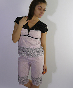 Состав изделия домашней одежды для женщины и муж. Комплект ( бриджи + майка )