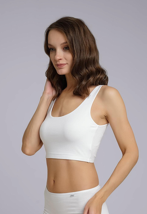 Майка-топ женская из эластичного хлопкового полотна. Двойной перед. Широкая бретель.