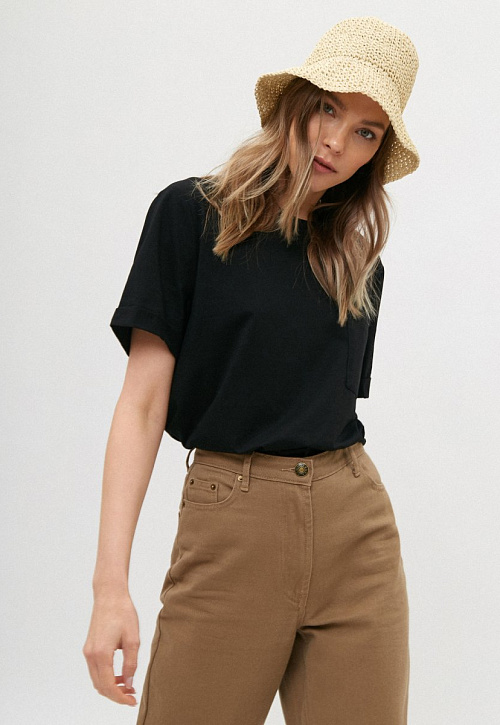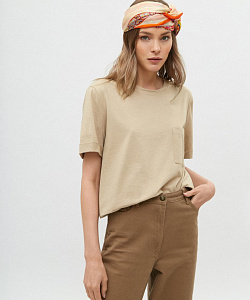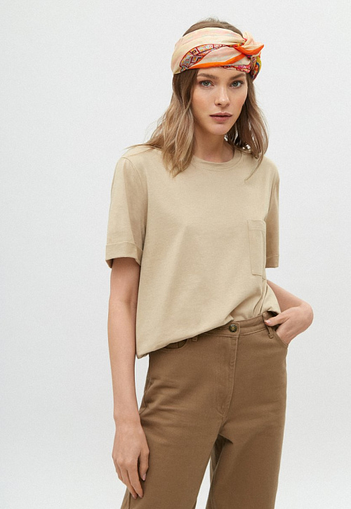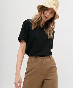 Классическая футболка свободного силуэта с круглым вырезом по горловине. Модель изготовлена из приятного к телу хлопкового полотна.