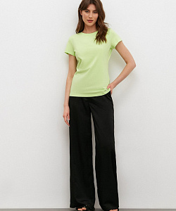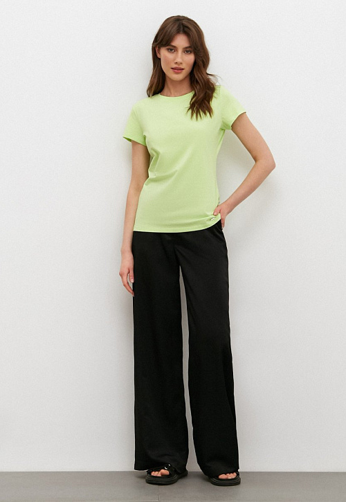 Классическая футболка приталенного силуэта с круглым вырезом по горловине. Модель изготовлена из приятного к телу хлопкового полотна с добавлением эластана.