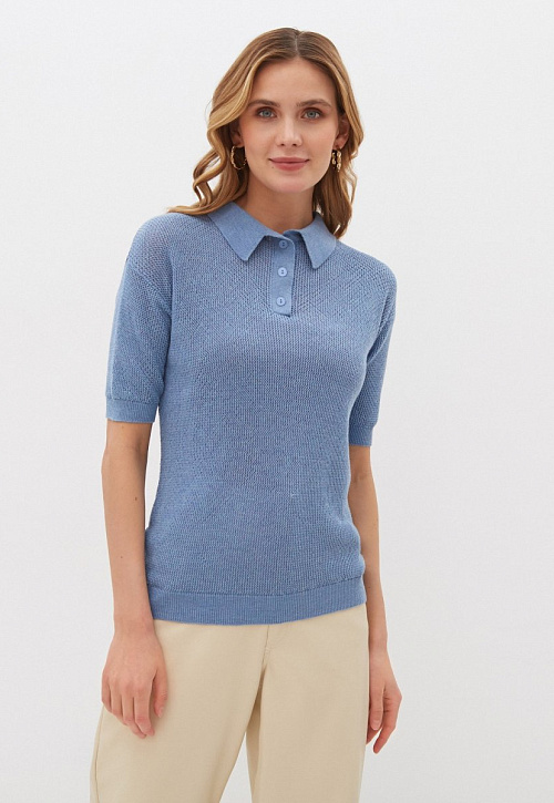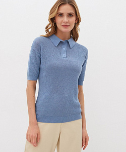 Трикотажная футболка-поло – оригинальная и стильная вещь. Модель средней длины прямого силуэта будет уместна в каждом гардеробе. Футболка изготовлена из мягкого ажурного трикотажа в свежих весенних цветах.