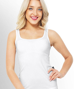 Майка на широких бретелях из трикотажного полотна с фактурной горизонтальной полоской.