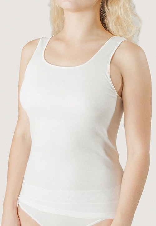 Великолепная классическая майка на средних бретелях. Модель с округлым вырезом выполнена из хлопка высочайшего качества, горловина и пройма отделаны тонкой тесьмой в тон изделия. Высококачественный материал и удобный крой, позволит Вам чувствовать себя свободно и легко, ощущая при этом максимальный комфорт при носке.