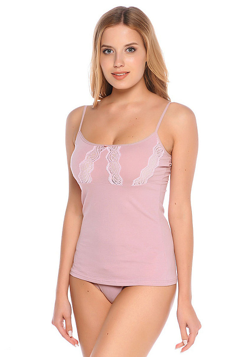 Топ женский однотонный, на тонких бретелях, передняя часть декорирована кружевом.