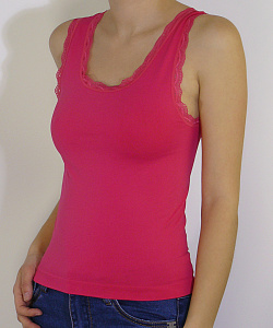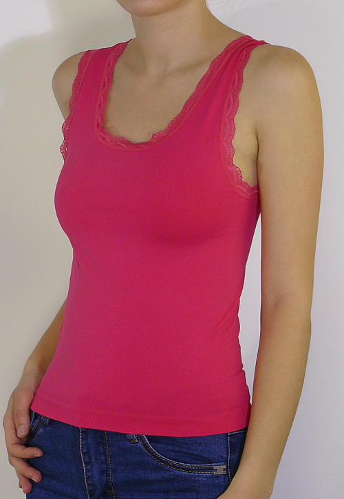 Женская майка с кружевом на широких бретелях.