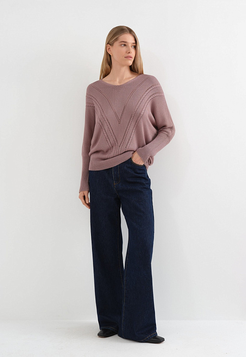 Классический джемпер кроя "летучая мышь" в изящном дизайне окутает комфортом и добавит образу женственности. Полуприлегающий крой со спущенной линией плеча адаптируется под разные типы фигуры и нивелирует нюансы. Воздушный трикотаж ажурной вязки уютно обволакивает, согревает и приятен к телу. Рекомендуем комбинировать с джинсами, брюками и юбками с гладкими спокойными фактурами.
