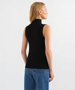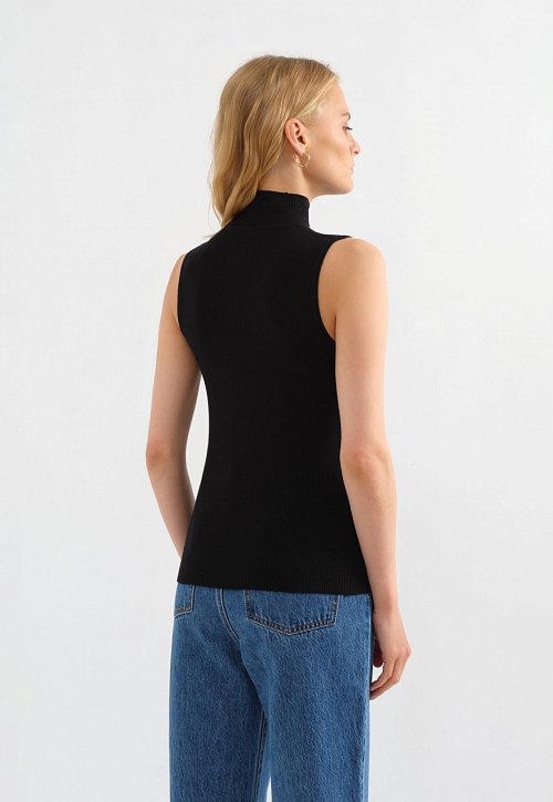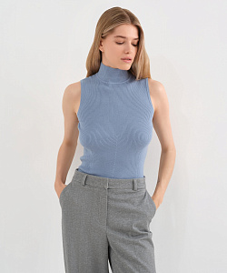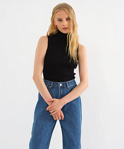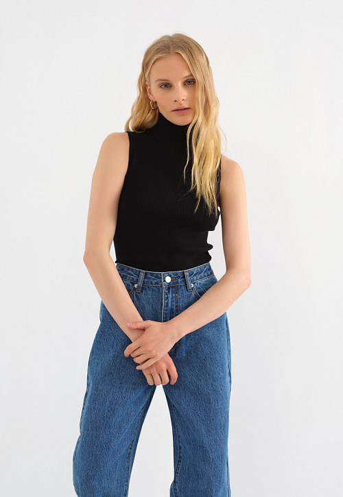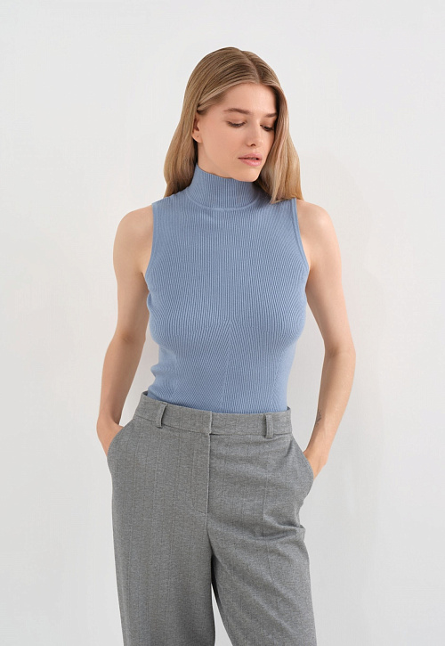 Трикотажный базовый топ с высоким горлом – всесезонная модель, которая встроится в разные образы. Летом ее можно носить соло, чтобы подчеркнуть фигуру. В демисезон – под жакет или как один из слоев образа. Выбрали для этого топа смесовый трикотаж гладкой вязки из вискозы и синтетических волокон, поэтому изделие мягкое, эластичное, сохраняет форму и цвет.