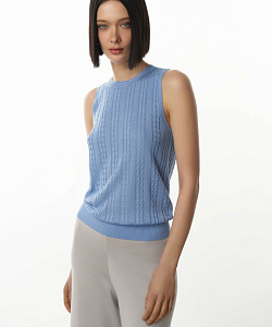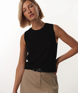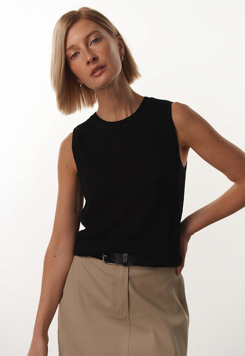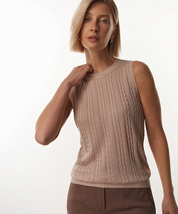 Укороченный топ из легкого фактурного трикотажа подчеркивает фигуру и создает женственный образ. Современная классика для ярких или спокойных луков. Материал – мягкий, приятный и простой в уходе трикотаж. Топ декорирован изящными вертикальными вязаными косами, которые визуально вытягивают силуэт. Круглая горловина, пройма и низ изделия отделаны резинкой в тон. Изделие представлено в ярких акцентных и универсальных базовых цветах.